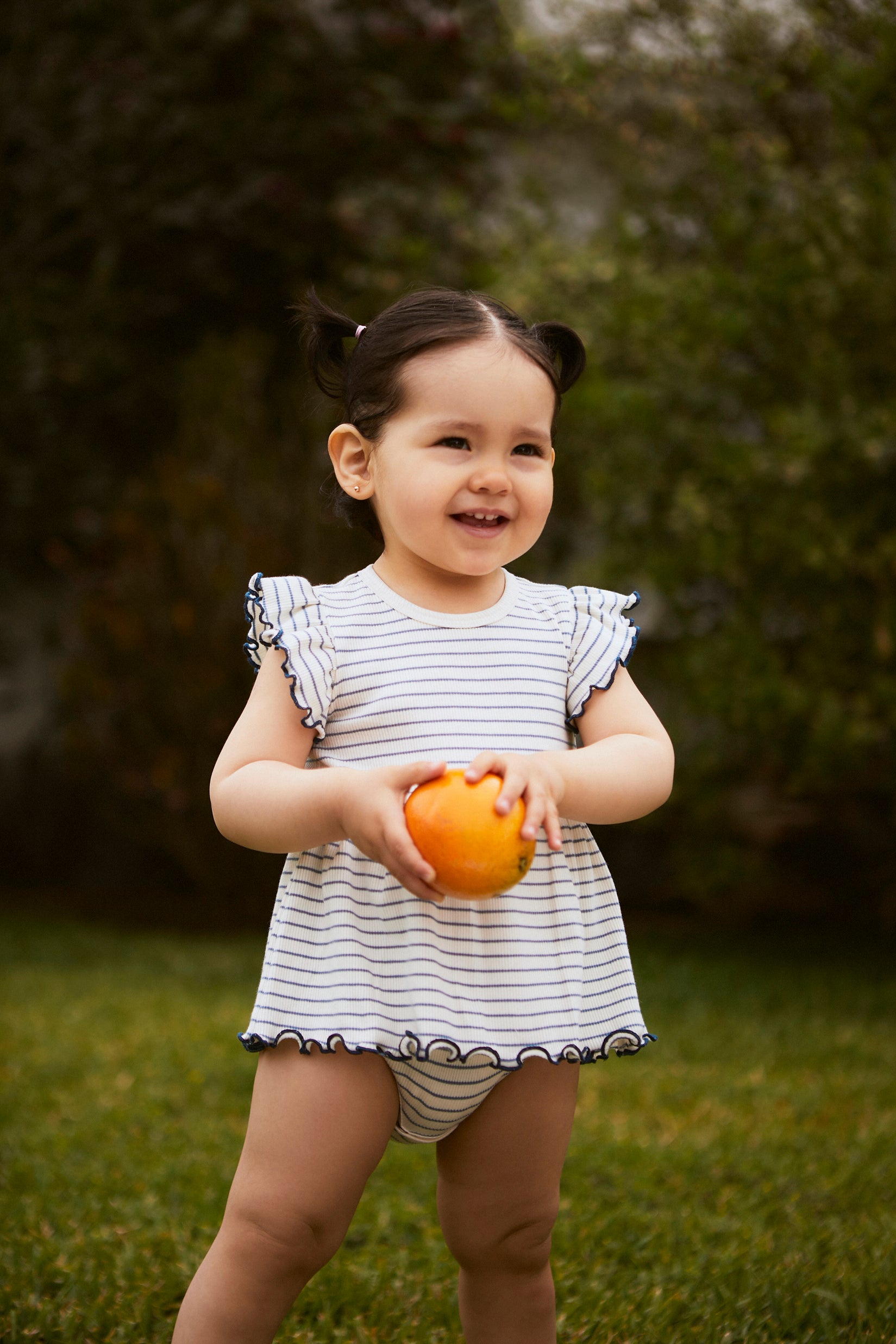 El Body Faldita Rib Perla Rayas Azul es una prenda que enamora a primera vista. Su diseño con faldita incorporada y suaves rayas lo convierte en una opción ideal para lucir en una salida especial, una reunión familiar o simplemente para vestir a tu bebé con un toque distinto en el día a día.