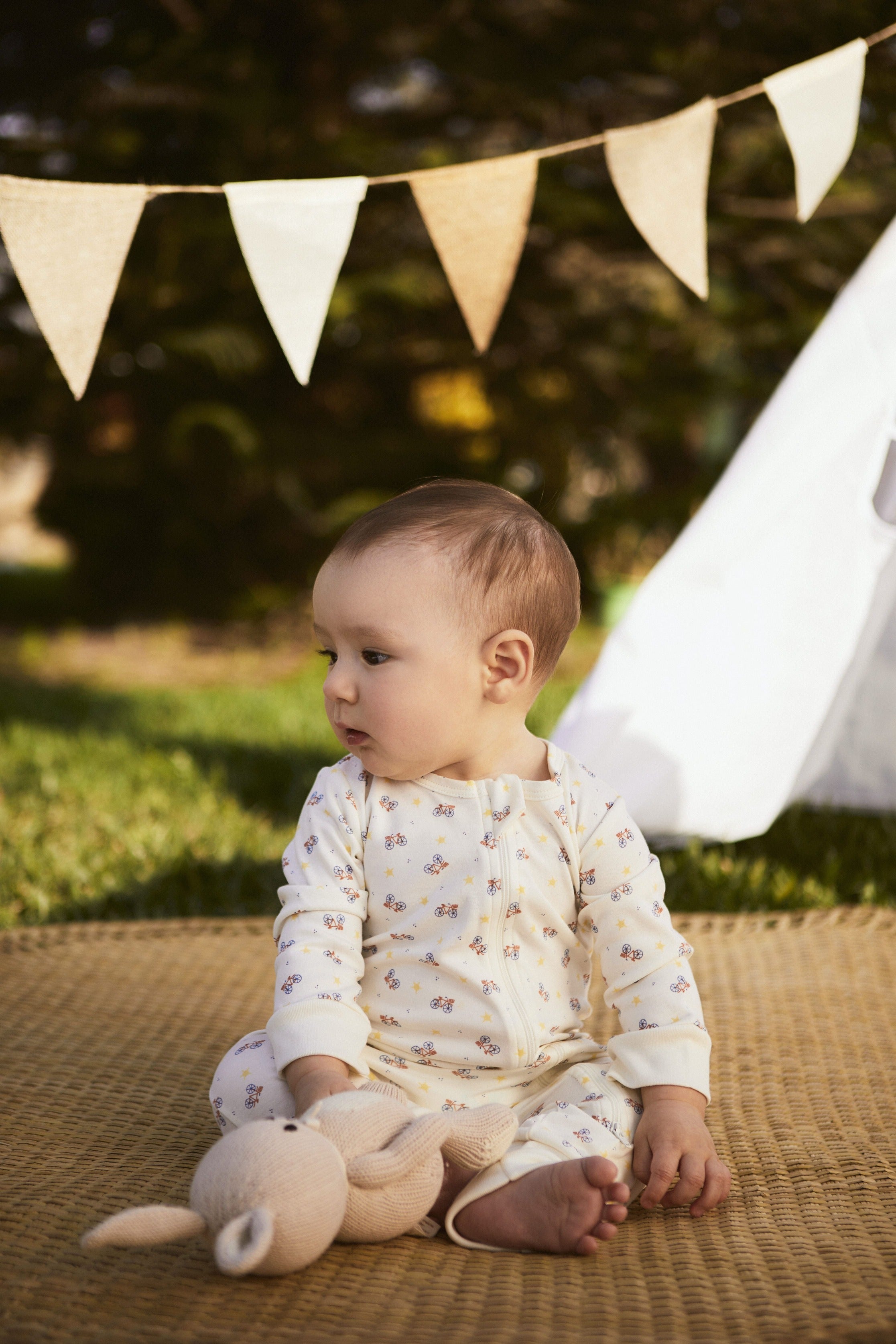 Nuestro Cierre Perla de Bicicletas es perfecto para acompañar a tu bebé. Con un delicado estampado, ideal para pieles sensibles. El cierre en la parte delantera facilitan el cambio, haciendo de este romper sea una opción práctica para vestir y mimar a tu peque en casa, de paseo o en salidas.